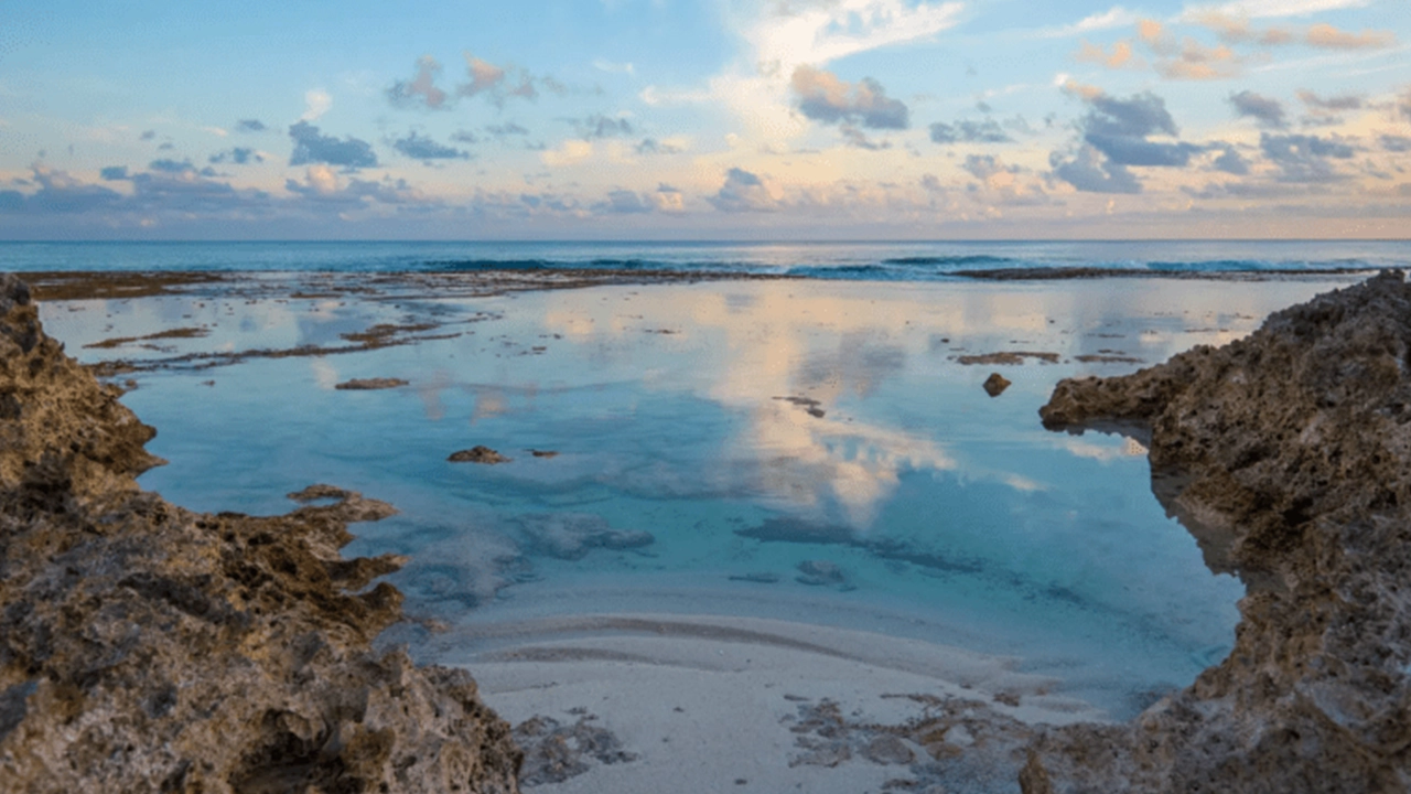 Surrounding these villages are two levels of farmland that ring the island. Below that are the maketau, or coral reefs. Volcanic rock gives way to 26 unique beaches and a number of hidden caves. Approximately one–half of these beaches are protected by an outer reef, while the other half heads directly into deep ocean.