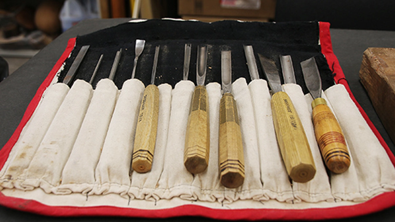 Hobbyists can find similar, relatively inexpensive wood-carving sets online, but at the PCC each fine-steel chisel in the carving kits costs about $40, and they are divided among five or six styles.