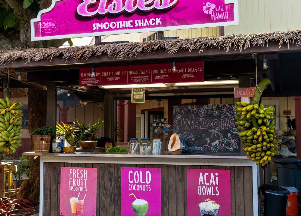 Elsie’s Smoothie Shack has been a staple at the Marketplace for years, known far and wide for their patented frozen drink, the Mango ʽOtai. This bit of bliss is made from fresh, tropical fruits grown on Elsie’s farm just a few blocks down the highway. Or maybe you want a smoothie served in a fresh pineapple? This and more are served daily from their kiosk directly across from the main entrance to Pounders Restaurant. With each sip, you’ll taste the vibrancy and authenticity of Hawaiʽi’s local produce, delivering a true taste of the islands in every cup.