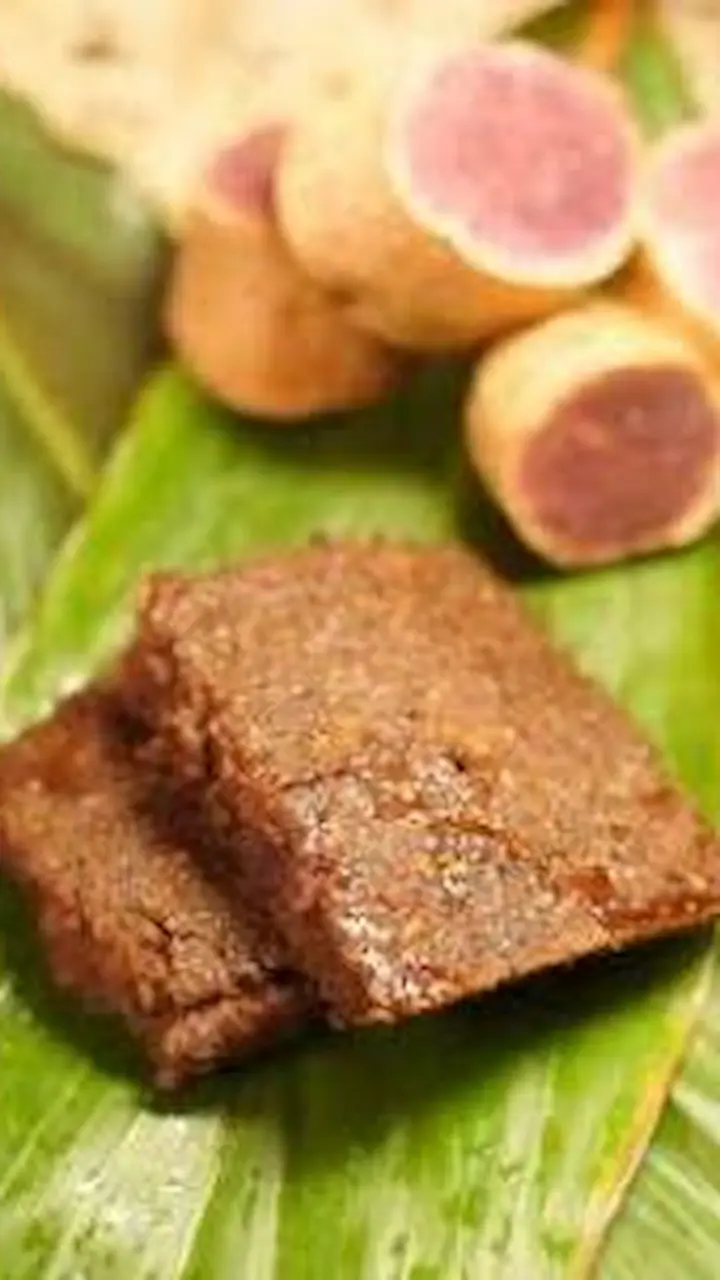 Chewy Hawaiian dessert made of mashed taro corms, coconut grates, and coconut water.