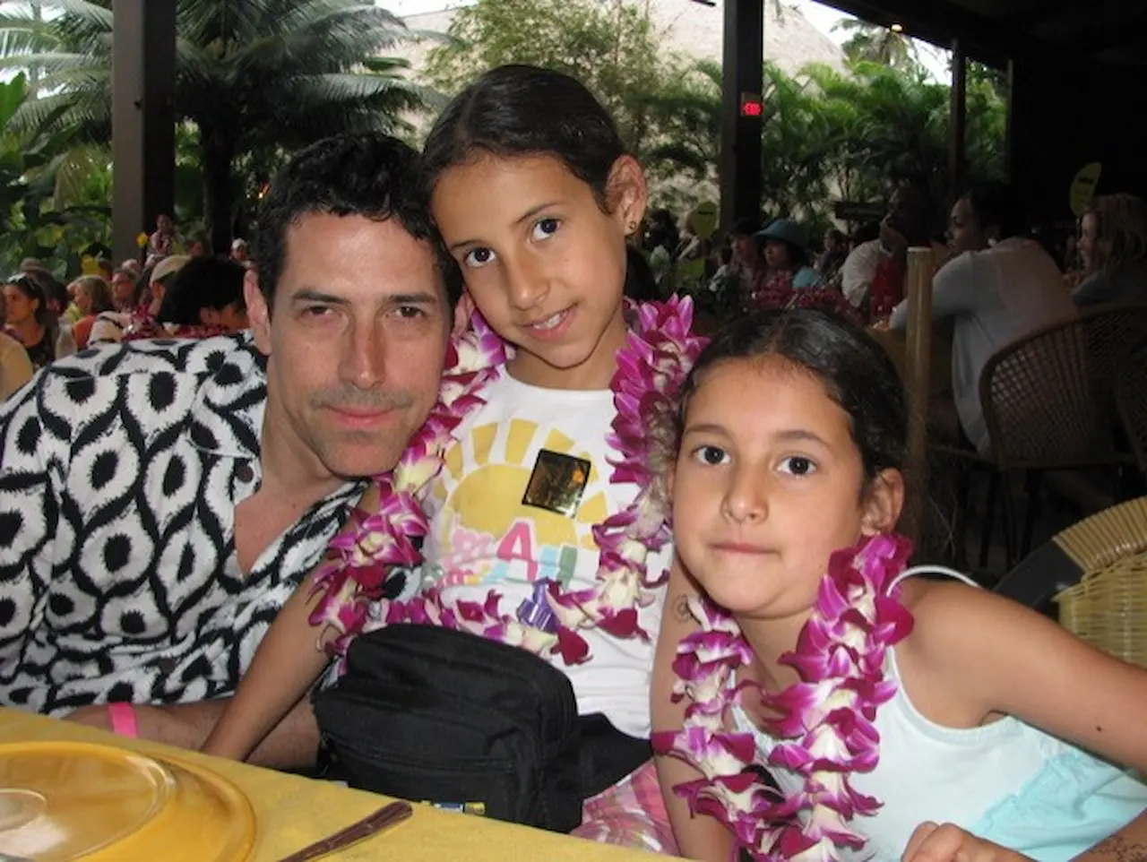 Other clear memories they had were that of Guillermo, the father, participating in the Tonga drum show, and the one that is documented here: the children posing with Kap. Close inspection of Kap in these pictures would never reveal that the photos were taken 16 years apart. (Kap has been demonstrating his skills at the Center since 1998. The lesson here may be that the Fountain of Youth involves climbing coconut trees daily and drinking coconut milk!)